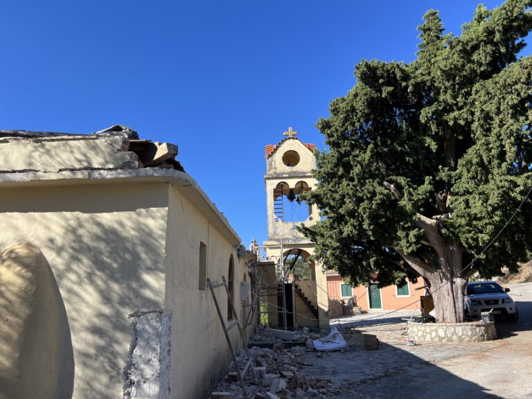 Ο Ενοριακός Ναός μας που χαρακτηρίστηκε κίτρινος μετά τις επιπτώσεις του σεισμού και δεν λειτουργούσε για 10 ολόκληρα χρόνια αποτελούσε “βαθιά πληγή” για τους κατοίκους και τους επισκέπτες του χωριού. Η γραφειοκρατία και η αδιαφορία για το μικρό χωριό μας οδήγησε σε μεγάλες καθυστερήσεις το έργο αποκατάστασης του ναού με τον κίνδυνο ενός νέου καταστροφικού σεισμού να ελλοχεύει έχοντας πιθανώς ως αποτέλεσμα την ολοκληρωτική καταστροφή του